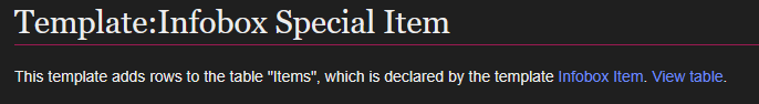 Template:Infobox Special Itemthat needs to store to the sameItemstable - Therefore,